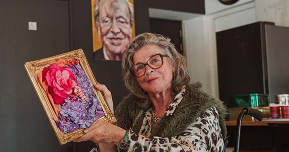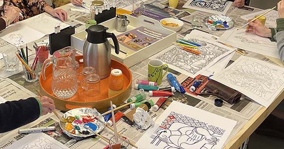 Bezoekers van het cultureel atelier in het Ramses Shaffy Huis zijn relatief wat jongere mensen met een culturele inslag en een chronische ziekte. Onder begeleiding blijven zij zo lang mogelijk creatief actief. Van houtskool en verf tot schildersezels en inspirerende kunstboeken, alle materialen zijn beschikbaar.
