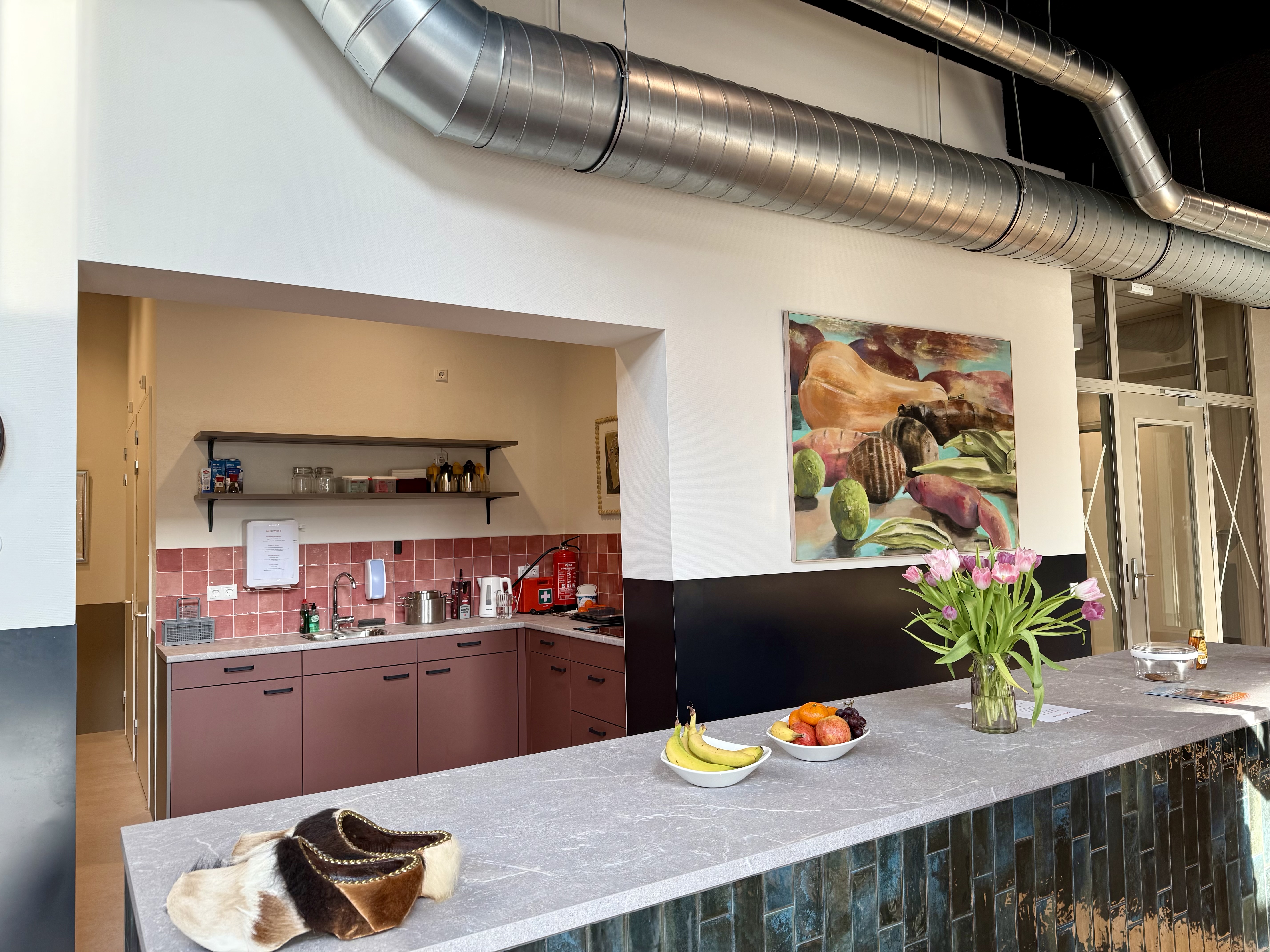 - Het culturele hart van het huis is de sociëteit op de begane grond. Deze levendige ontmoetingsplek wordt een multifunctionele ruimte waar workshops, exposities en optredens plaatsvinden. Bewoners kunnen hier eten en actief deelnemen aan het culturele programma.